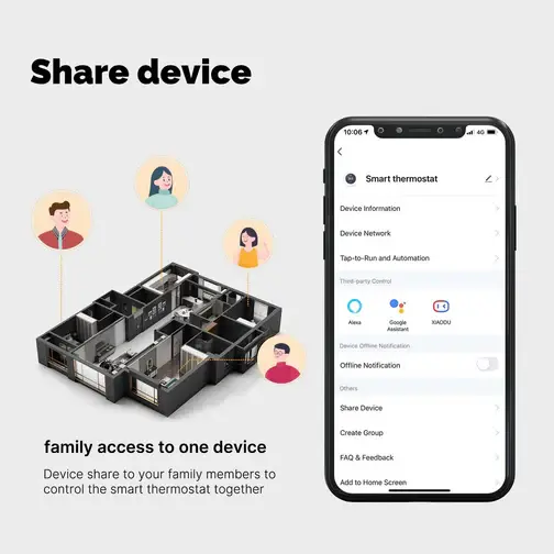 - مشاركة الأجهزة: يمكنك مشاركة الجهاز مع أفراد العائلة للتحكم المشترك بالثرموستات.