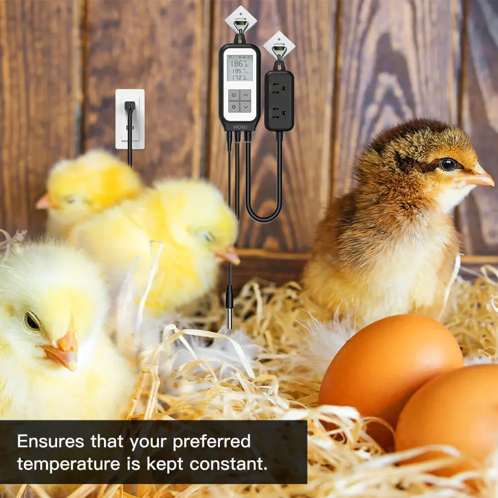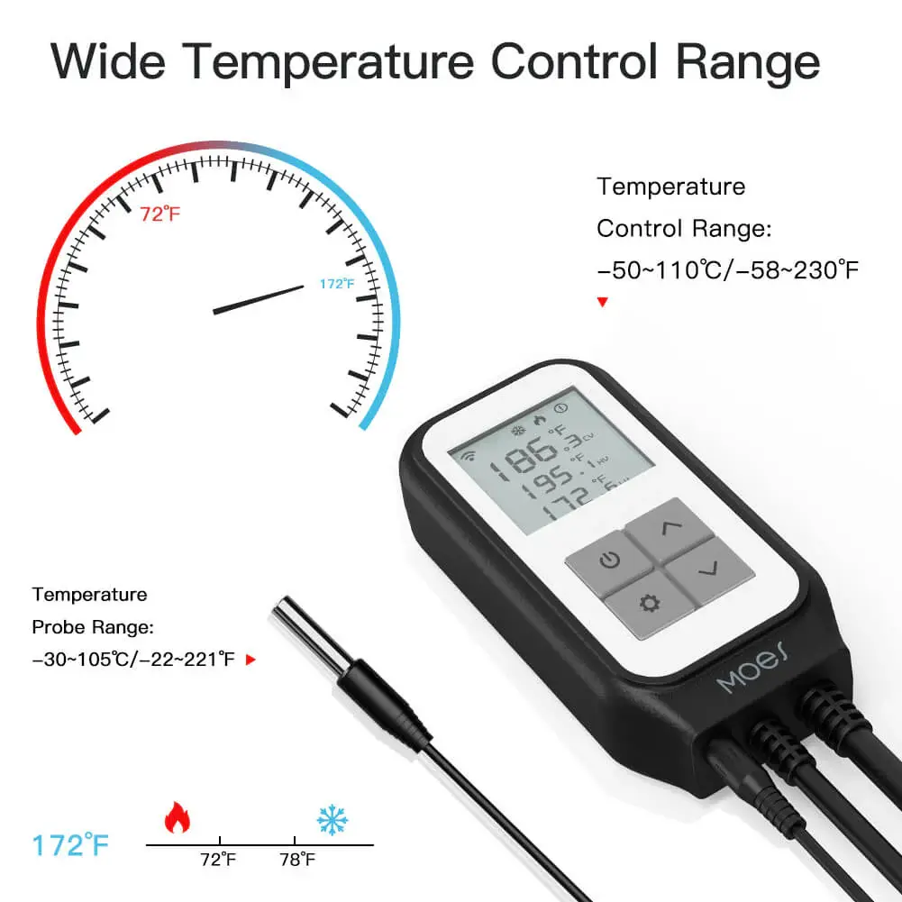 - توافق واسع: يدعم نطاق حرارة من -30 إلى 105 درجة مئوية / -22 إلى 221 فهرنهايت، مما يجعله مناسبًا للحرارة الشديدة صيفًا أو شتاءً. كل مخرج يتحمل 10 أمبير / 1250 واط، مما يجعله مثاليًا لأجهزة التسخين والتبريد مثل أنظمة التخمير، والحضانات، والدفيئات الزراعية، والمشروعات المنزلية.