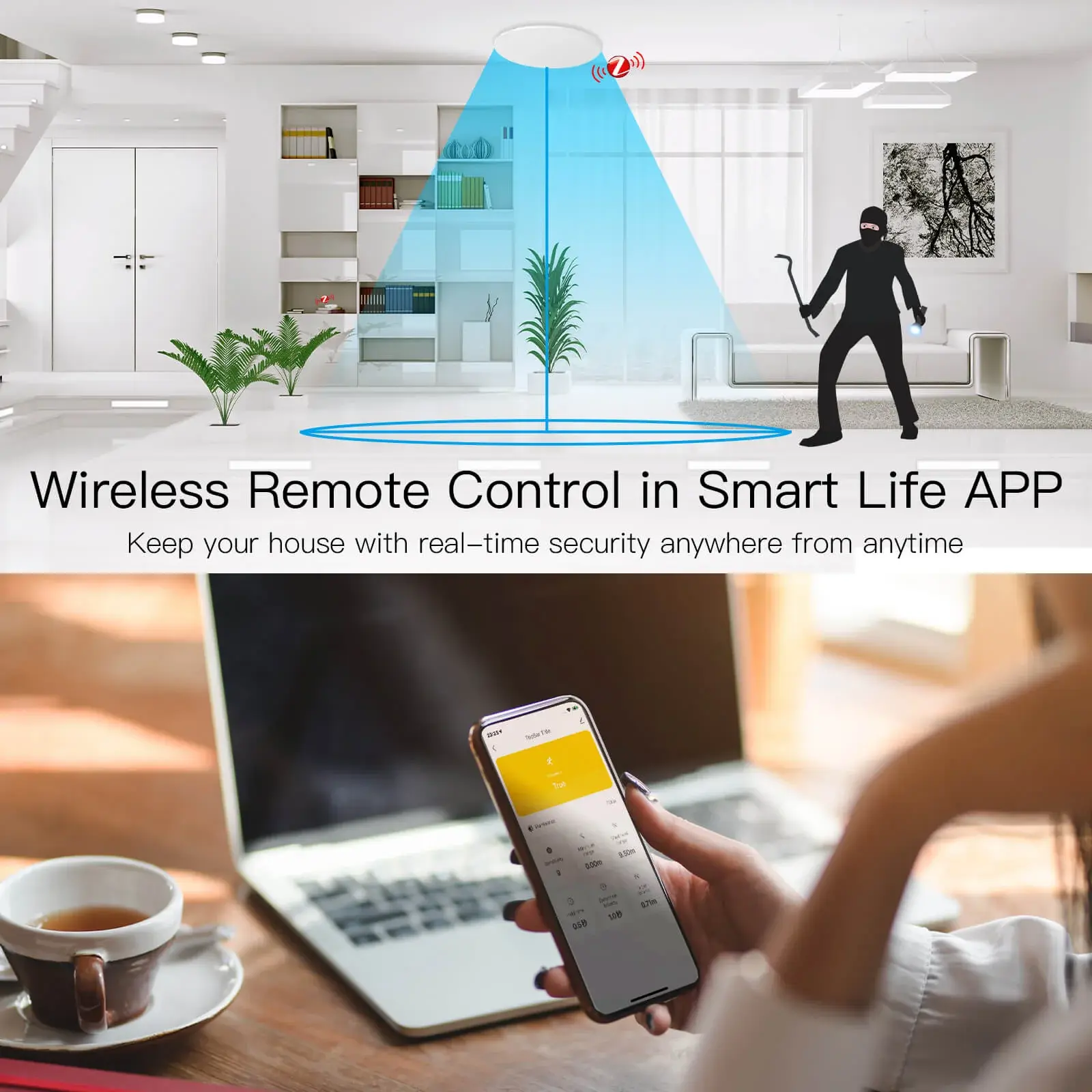 - واجهة تطبيق واضحة وسهلة الاستخدام: يمكنك المراقبة والتحكم عن بعد عبر تطبيق Tuya Smart مع عرض مسافة الهدف في الوقت الفعلي. يدعم التركيب في السقف بسهولة.