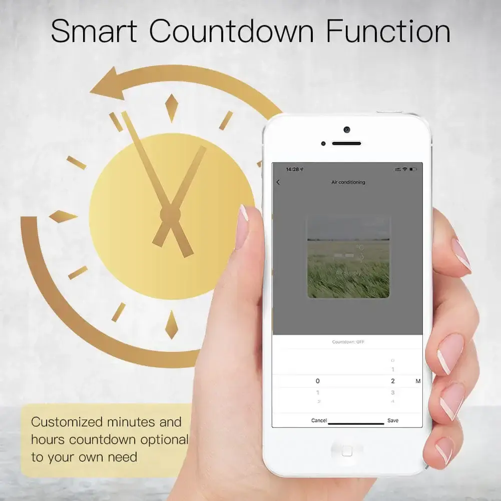 • مؤقت وعدّ تنازلي ذكي: إمكانية الضبط التلقائي للتشغيل/الإيقاف مع خيارات عدّ تنازلي (1 دقيقة / 5 دقائق / 30 دقيقة / 1 ساعة وغيرها) مع إمكانية مراقبة حالة الجهاز المتصل مباشرة.