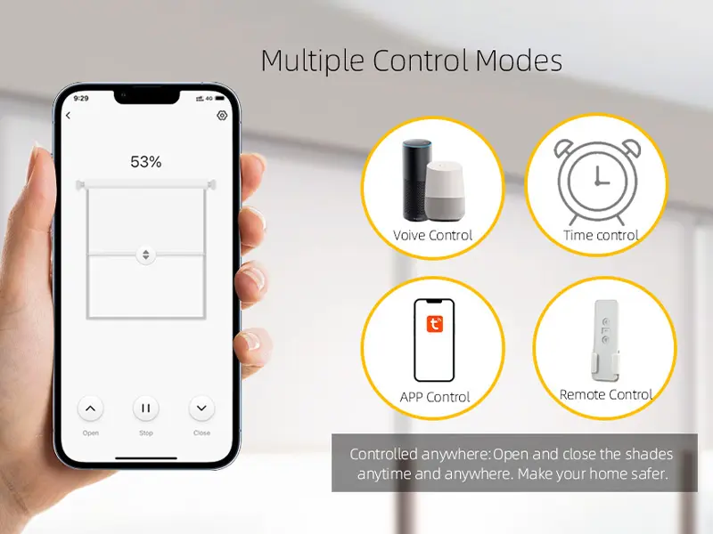 3.التحكم عبر التطبيق: يمكنك إدارة الستارة من خلال تطبيق الهاتف الذكي حتى أثناء وجودك خارج المنزل.