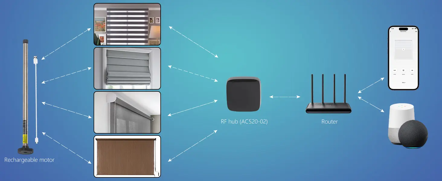 يوفر هذا المحرك الذكي للستائر خيارات تحكم مرنة، مما يجعله جزءًا أساسيًا من أي نظام منزل ذكي:1.التحكم عن بُعد: يمكنك ضبط الستارة بسهولة باستخدام جهاز تحكم عن بُعد بتردد 433 ميجاهرتز.