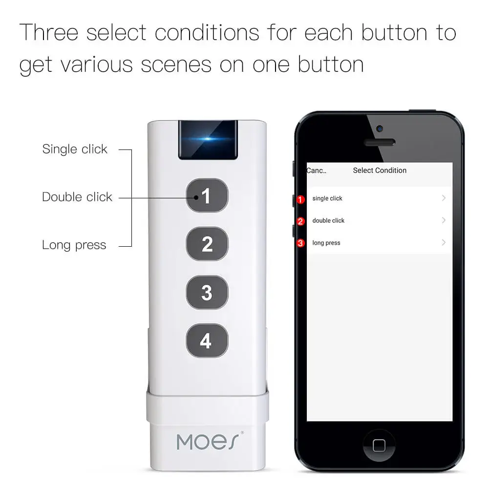 - أتمتة ذكية للتحكم في مفتاح المشهد اللاسلكي Tuya ZigBee باستخدام أي جهاز ذكي من Tuya عبر تطبيق MOES لإنشاء مشاهد متعددة لحياتك الذكية. يمكن لكل زر أن يؤدي وظائف متعددة ويشغل مشاهد مختلفة. (ملاحظة: يتطلب استخدام المحور ZigBee للعمل بشكل طبيعي).