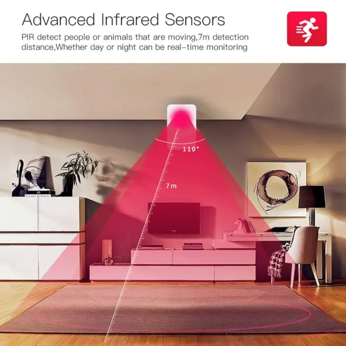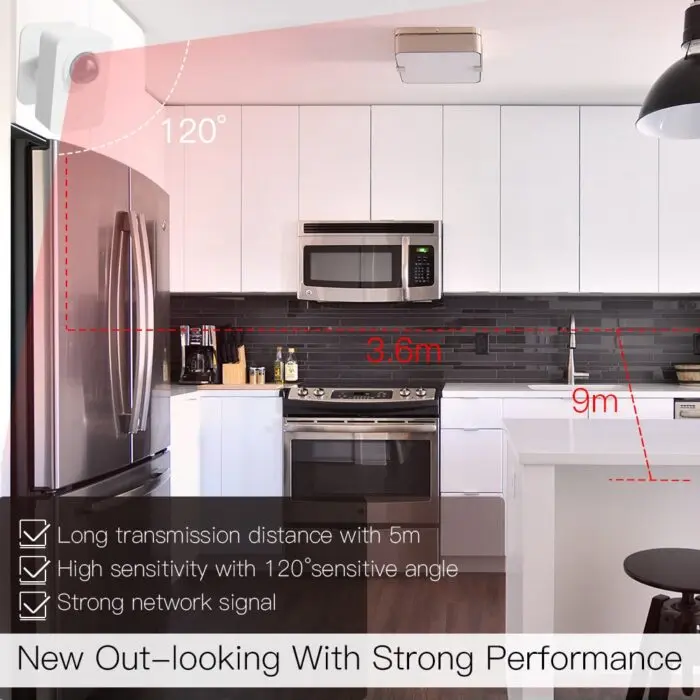 - يصل مدى الكشف إلى 8 أمتار، مما يجعله مثاليًا للاستخدام في الغرف الكبيرة والمساحات المفتوحة.