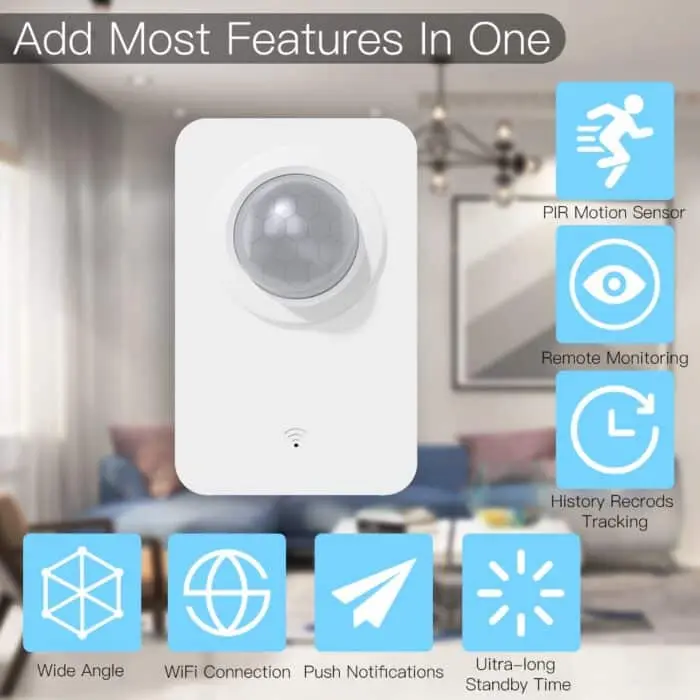 - جهاز كشف الحركة MOES WSS-FL-PIR-A-EN مزود بالواي فاي، ويقدّم مراقبة متقدمة وتنبيهات لحماية منزلك أو عملك.