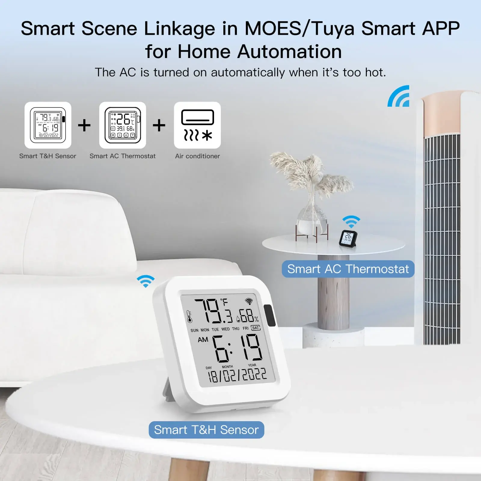 • الربط الذكي للمشاهد: يمكنك أتمتة الأجهزة الذكية الأخرى مثل السخان الكهربائي أو جهاز الترطيب وحتى منظم الحرارة الذكي للتحكم في التكييف تلقائيًا، لتوفير بيئة مثالية للمنزل كجزء من نظام Tuya Smart.