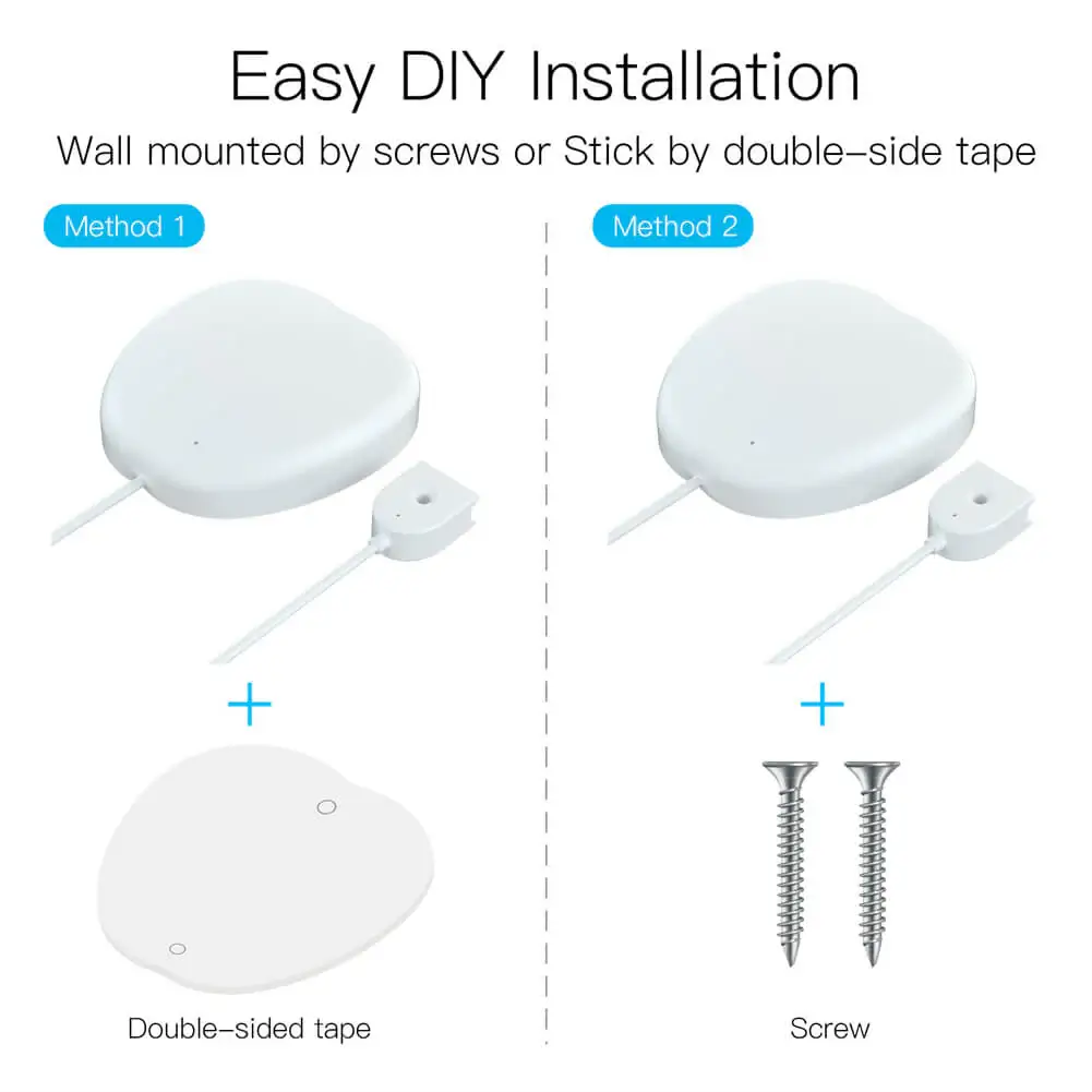 Easy to operate: No hub required, and simple download the MOES app on iOS and . سهل التشغيل لا يتطلب وجود وحدة تحكم (Hub)، فقط قم بتحميل تطبيق MOES على أجهزة iOS و Android. كما أنه متوافق مع Amazon Alexa و Google Home Assistant، مما يتيح لك التحكم الصوتي بالمستشعر. يتميز بتصميم مقاوم للماء وهيكل مدمج يسهل عملية التركيب بسرعة وسلاسة.
