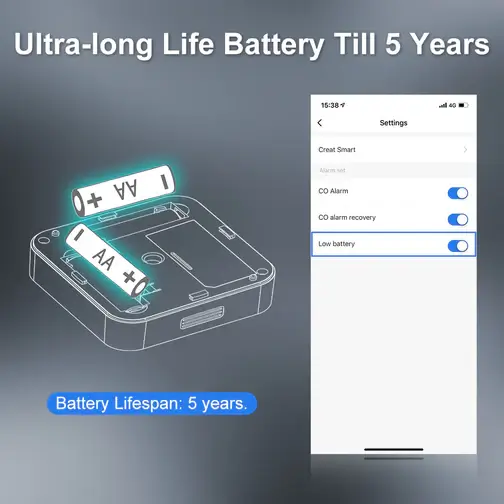 - عمر بطارية طويل جدًا يصل إلى 5 سنوات: لا داعي للقلق بشأن استبدال البطاريات بشكل متكرر، حيث تدوم بطاريات AA حتى 5 سنوات، مع تذكير بانخفاض البطارية لضمان استمرار التشغيل.