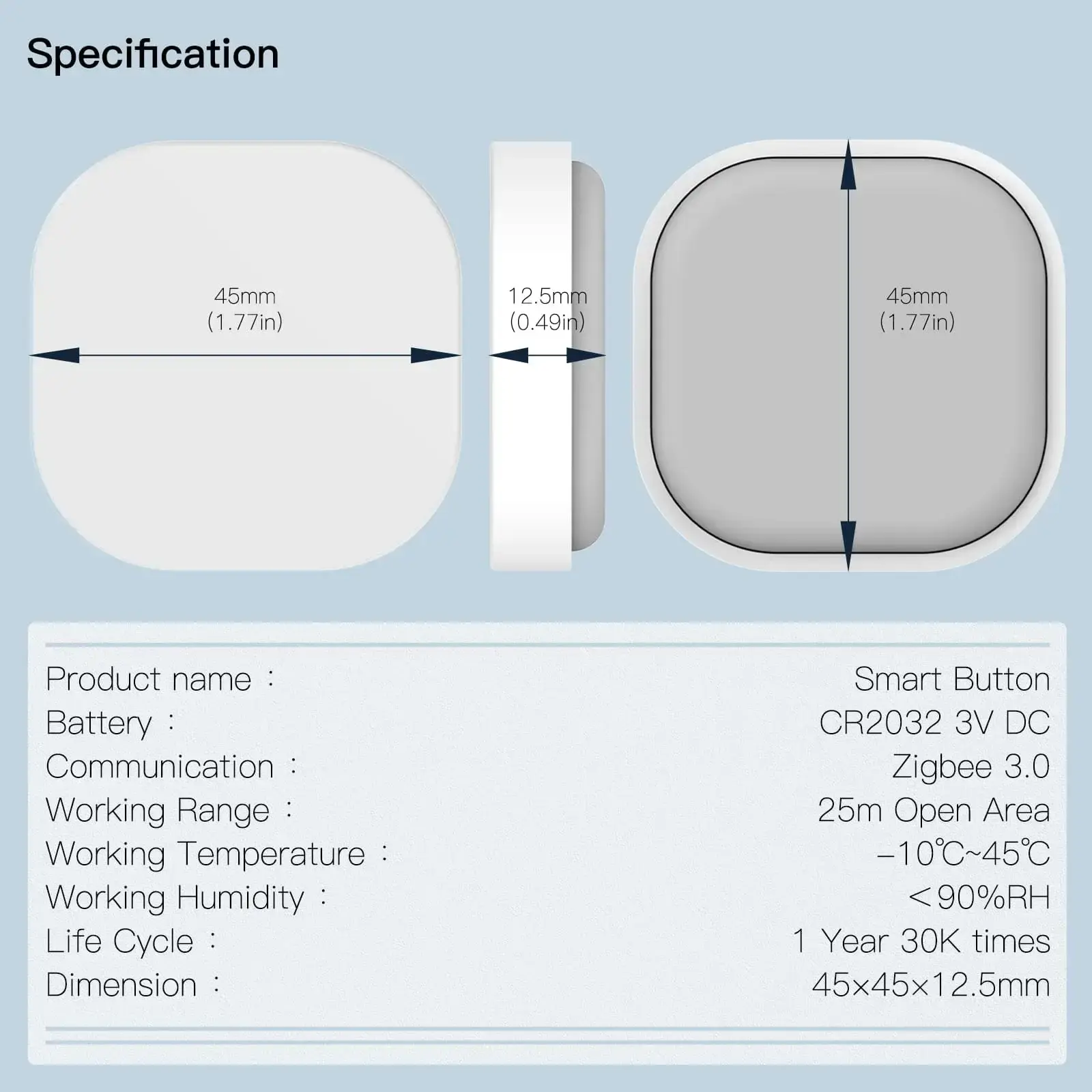 - الأبعاد: 45 × 45 × 12.5 ملم