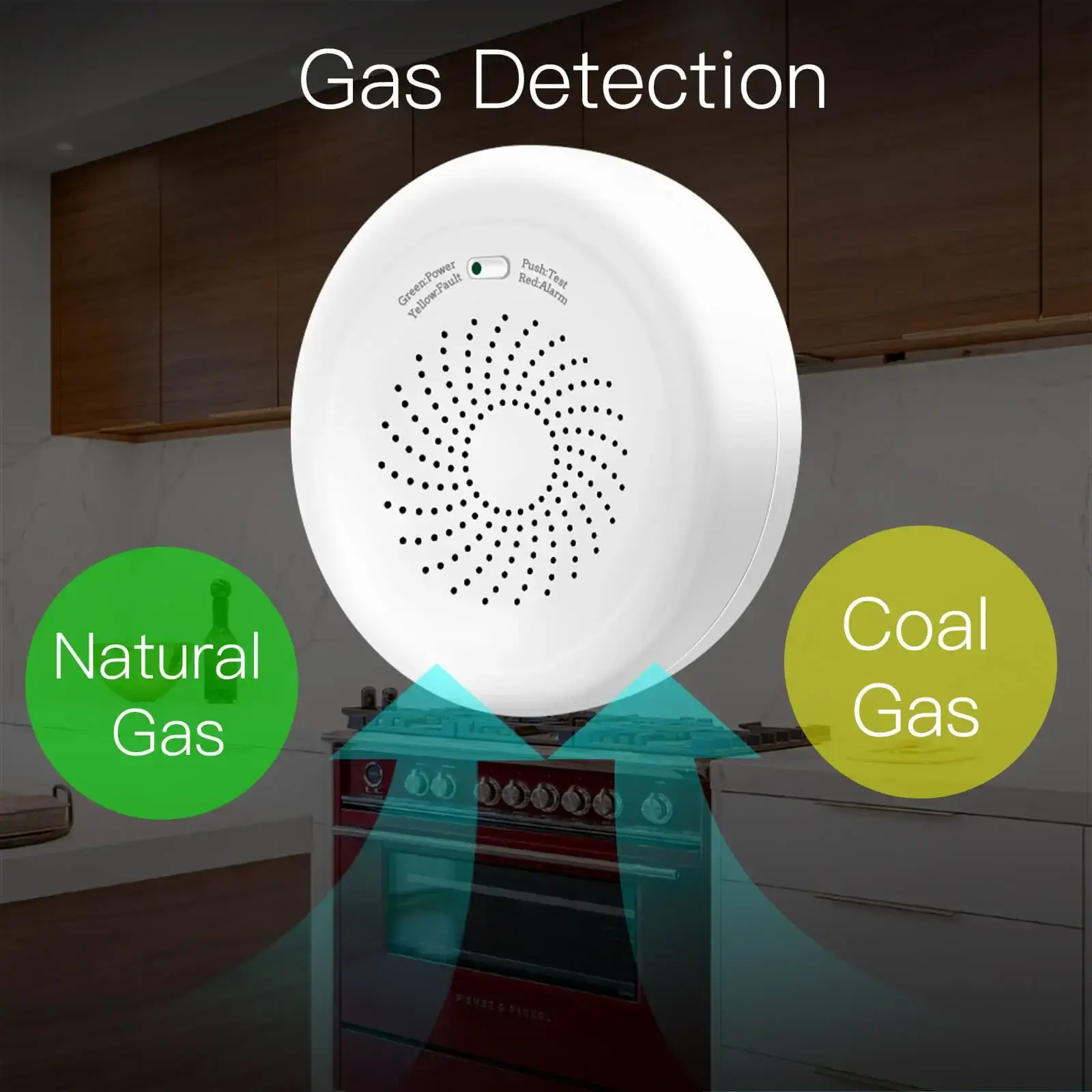 - تحكم ذكي عن بُعد واختبار يدوي: يمكنك إجراء اختبار ذاتي لجهاز كشف الغاز عن بُعد بسهولة من خلال التطبيق، مع إمكانية كتم صوت الإنذار يدويًا عند الحاجة، ما يوفّر راحة كبيرة في الاستخدام، خصوصًا في المطابخ والأماكن الداخلية المعرضة لتسرّب الغاز.