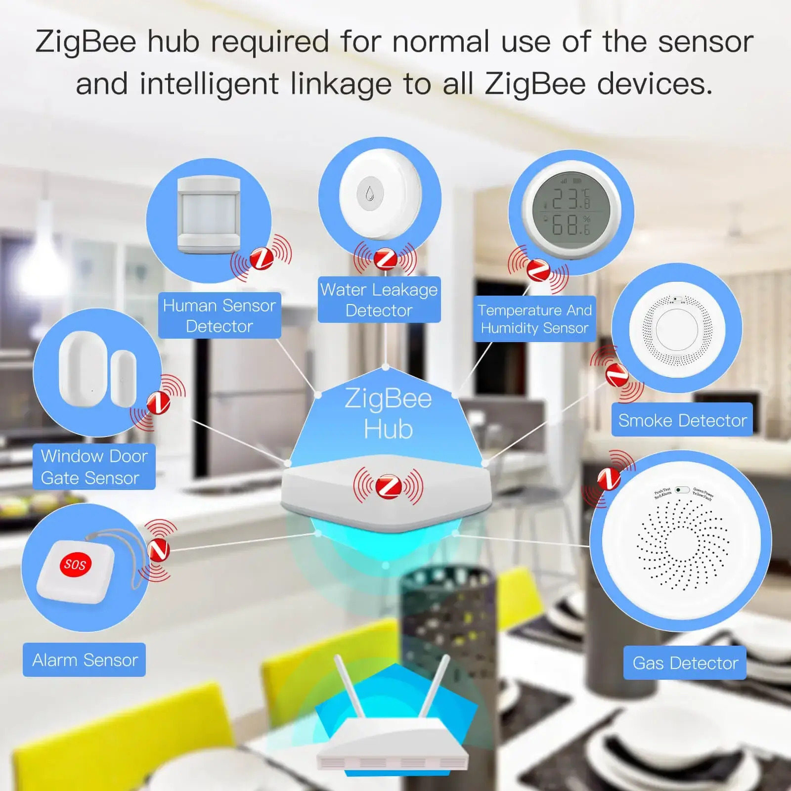 - كاشف ذكي لتسرّب الغاز يعمل بتقنية زيجبي من تويا: يتطلب هذا المستشعر وجود مركز تحكم ذكي (بوابة زيجبي لاسلكية) ليعمل بكفاءة، إذ يشكّل هذا المركز حلقة الوصل والتحكم لجميع منتجات زيجبي الذكية، ويتيح الربط الكامل بينها لتحقيق التكامل الذكي في المنزل. ما عليك سوى إضافة المستشعر إلى مركز زيجبي بعد ربط المركز بتطبيق “مويس” أو “تويا”.