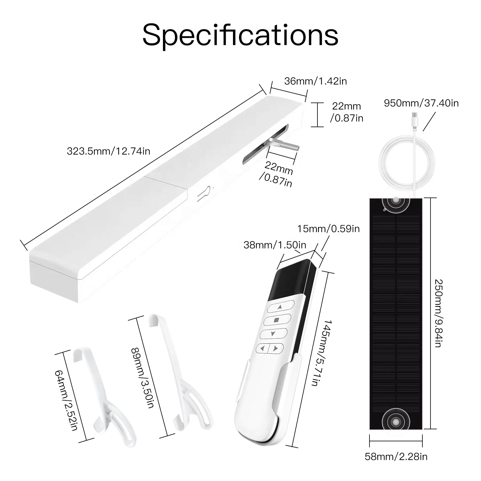 Tuya Blue tooth Smart Plantation Shutters Venetian Blinds Motor for Horizontal Shutters Blinds Shade Light Adjustable Smart Life APP Control USB Solar Panel Rechargeable Cordless Privacy Blinds with Valance for Smart Home Office Blue tooth Hub Required for Alexa Google Home Voice Control