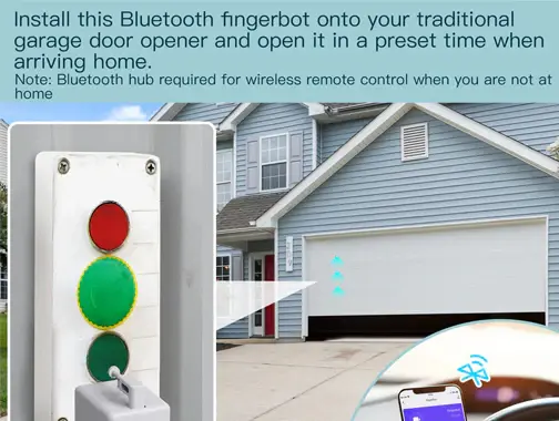 For added convenience, you can install the Fingerbot onto your traditional garage door opener to automate the process of opening it upon your arrival home. No more fumbling with keys or remotes – just set the preset time, and the Fingerbot will do the rest.