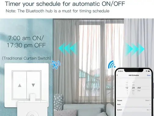 The MOES Ble Smart Fingerbot Plus offers wireless touch control for precise and flexible operation. With the ability to set the sustain time, you can easily customize your preferences. Additionally, you have the option to disable the touch control in the Smart Life app, ensuring safety and preventing misoperations by children. With timer functionality, you can conveniently schedule automatic ON/OFF operations. Please note that the Bluetooth hub is essential for timing schedules.