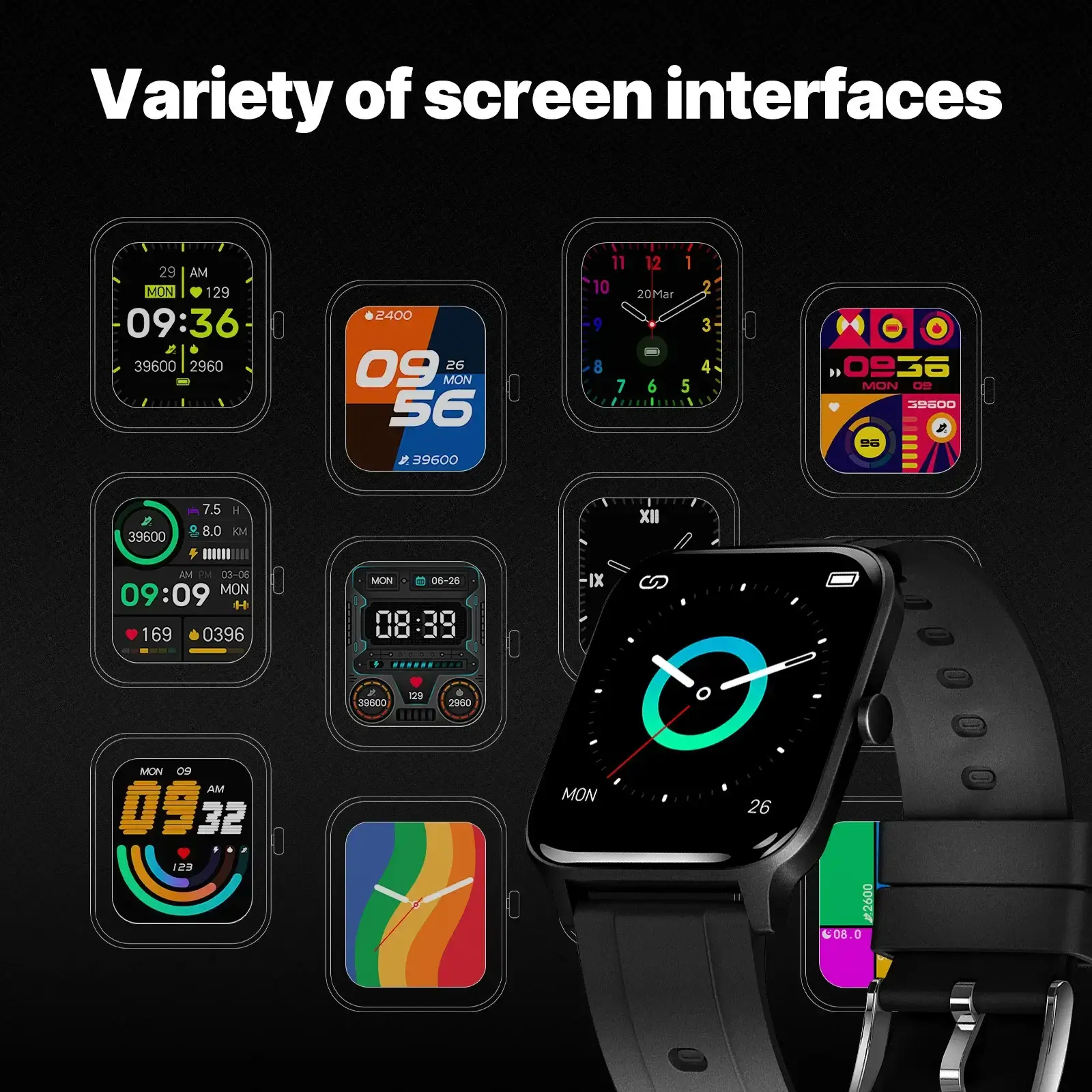 - Variety of screen interfaces: Multiple choices of dial plates with display of such as time, date and step number, brings colorful experience to your life.