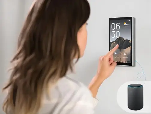 Connect multiple scenes, which syncs with mobile phone, replaces the role of scene switch, combined with voice control, to be your intimate home keeper. Thanks to Alexa built-in, Smart Control Panel can realize