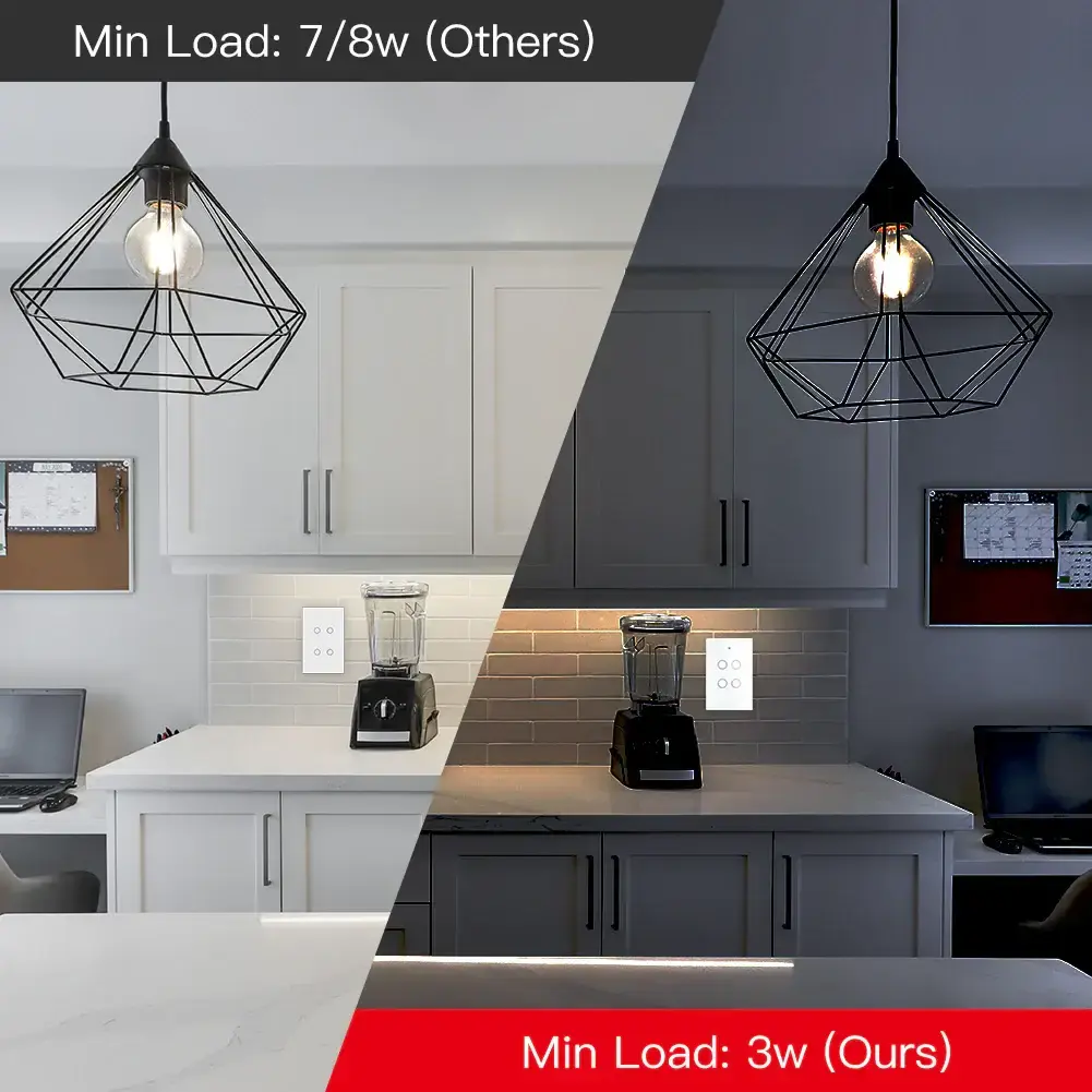 • New 3-Way Circuit Capability: Supports two switches controlling one light. Control via app, touch, or voice, and achieve multi-control by associating with other smart switches for 2- or 3-way circuits. (Note: Multi-control association works for one gang per switch only; several gangs on a single switch cannot be associated.)
