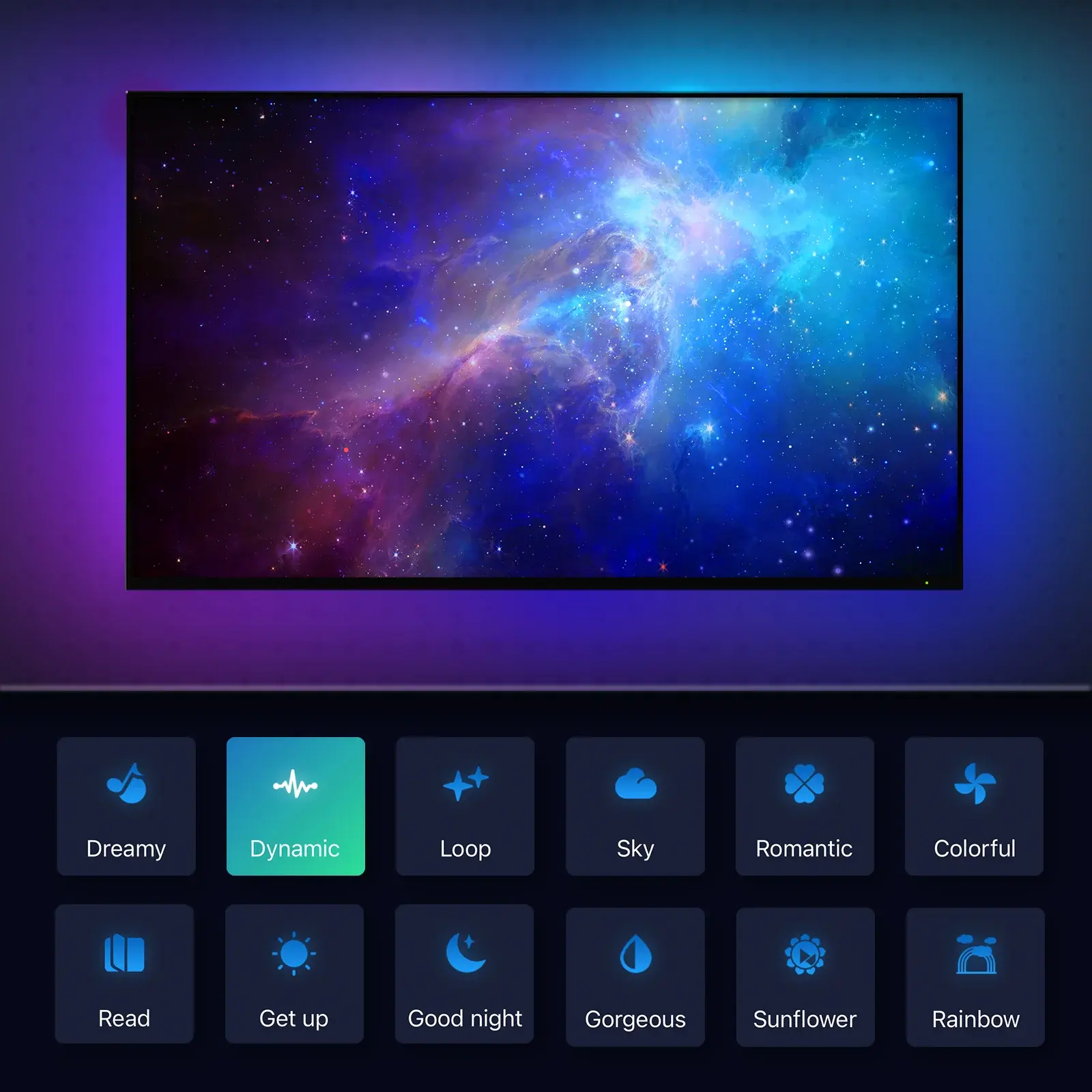 Immerse yourself in stunning visuals with the Smart WiFi TV Backlight. Featuring a 4K HDMI 2.0 sync box, it reacts to on-screen content and music, creating a cinematic ambient lighting experience right in your living room.