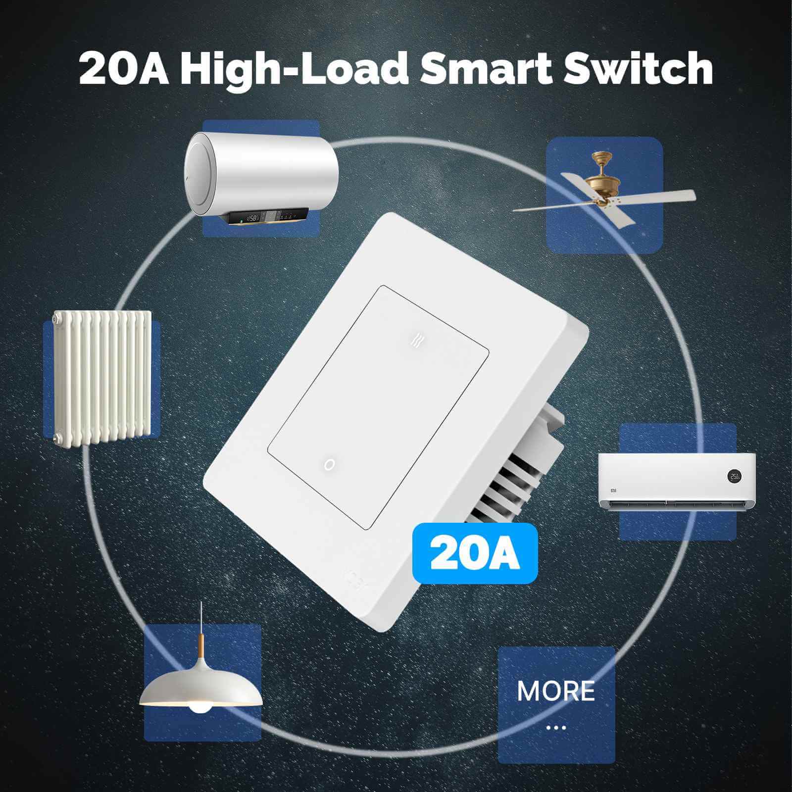 Equipped with dual cutoff protection, it provides extra safety through double insulation and isolation, significantly reducing the risk of electrical hazards. The 20A high-load switch safely manages high-power appliances such as water heaters, radiators, ceiling fans, lights, air conditioners, and more.