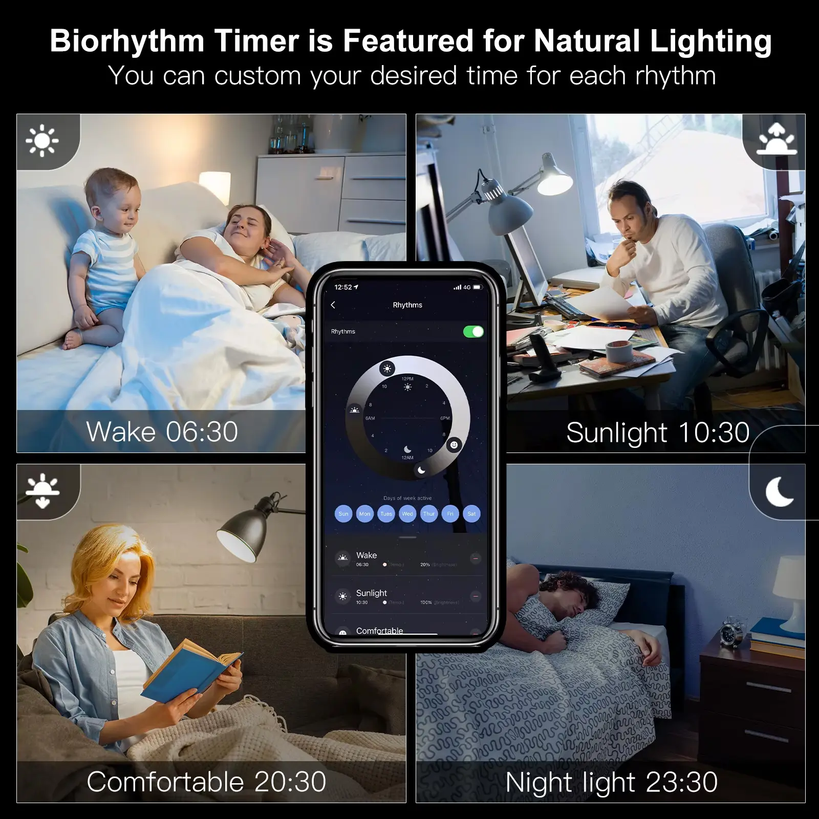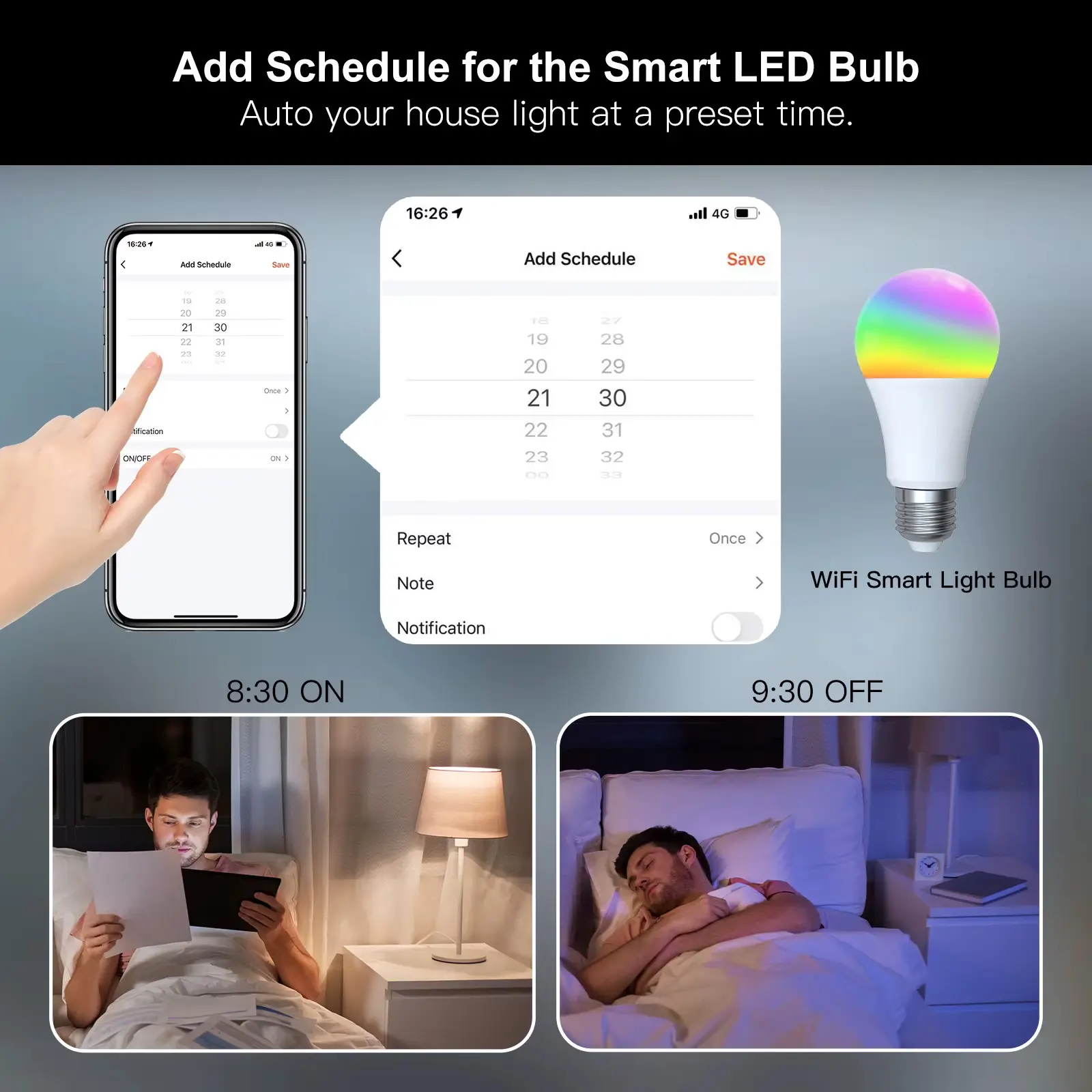 2.Timing and Remote Control: You can turn on/off the light as per yourself daily timetable, and you can control the smart bulb anywhere you like via your Smart Life Tuya App. Don't worry whether you had turned off your lights or not, just pick up your phone and turn lights off or turn on them before you get home.(Compatible with Android & iOS)