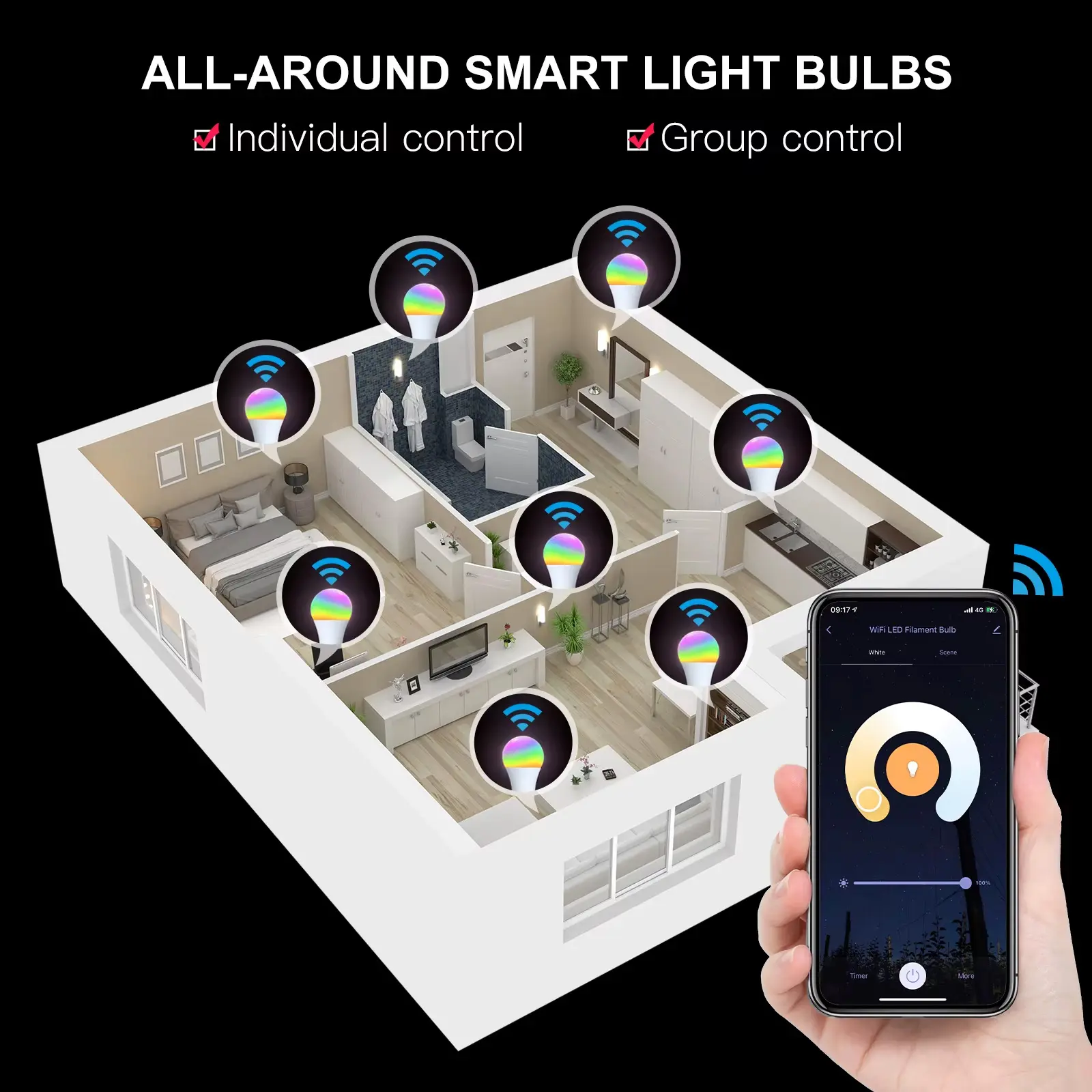 Wifi Dimmable Lamp LED Light Bulb With Alexa Color Changing Warm White PVC Globe AC E27 Smart Bulb Ceiling Rgb C9 Faceted