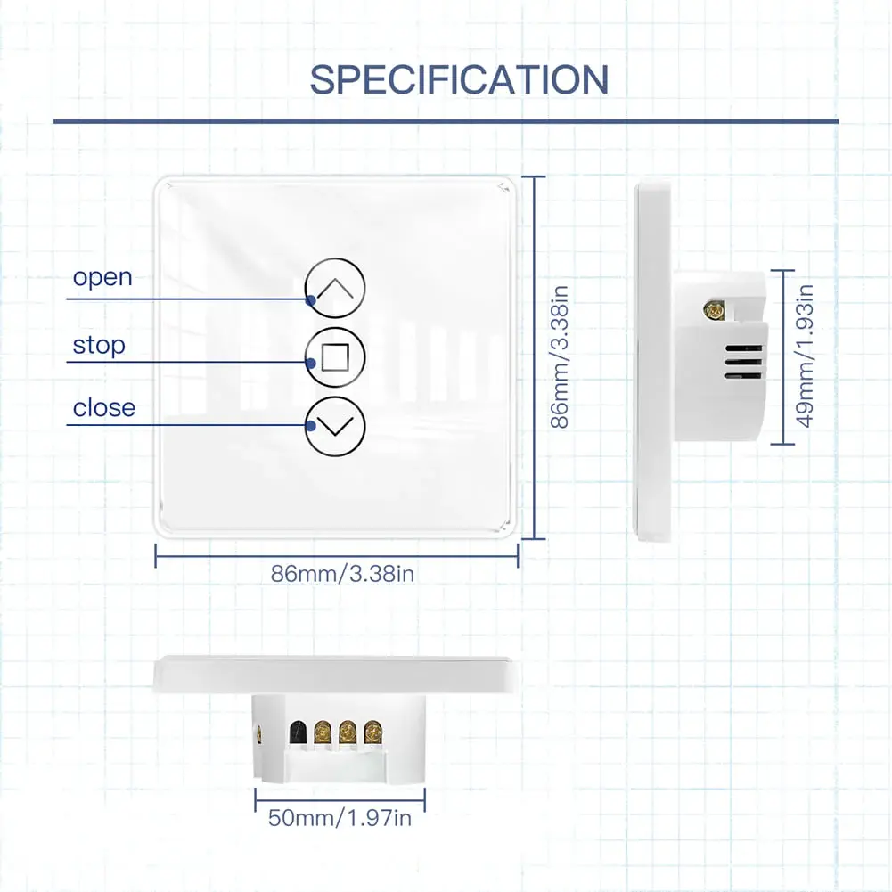Upgrade your home automation with the innovative MOES WiFi Curtain Switch RF433 Smart. Designed with a sleek 2.5D arc glass touch panel, this switch adds a touch of modern elegance to your space while providing advanced control over your roller blinds and shutters.