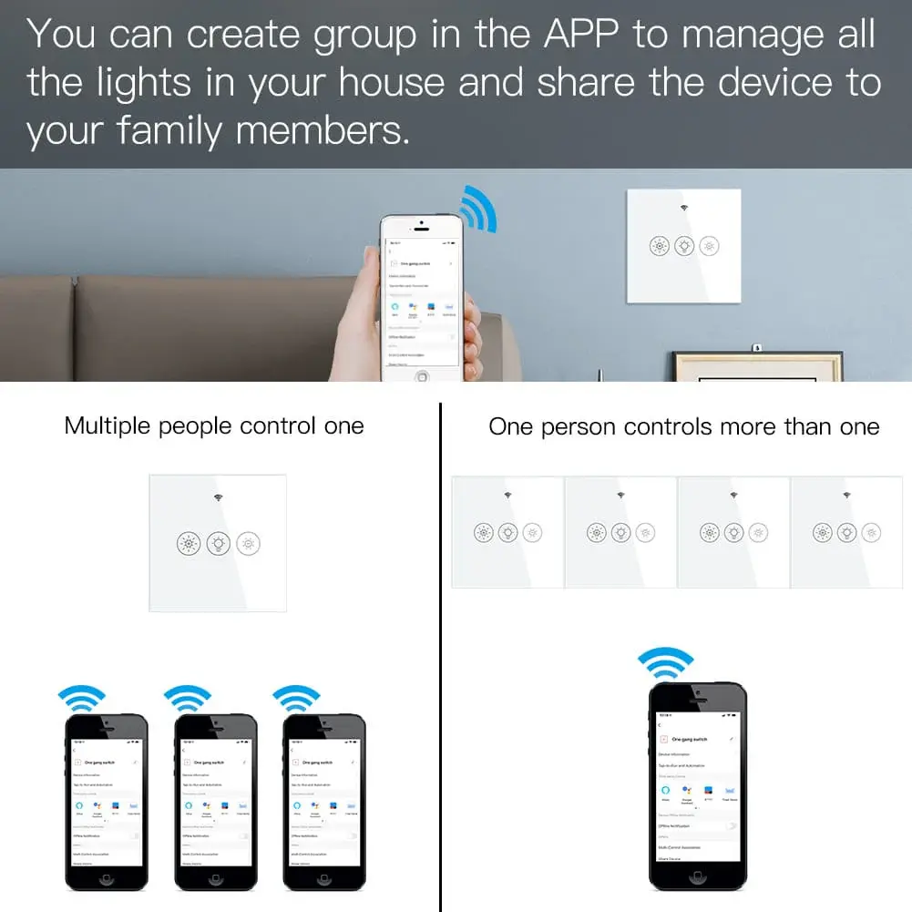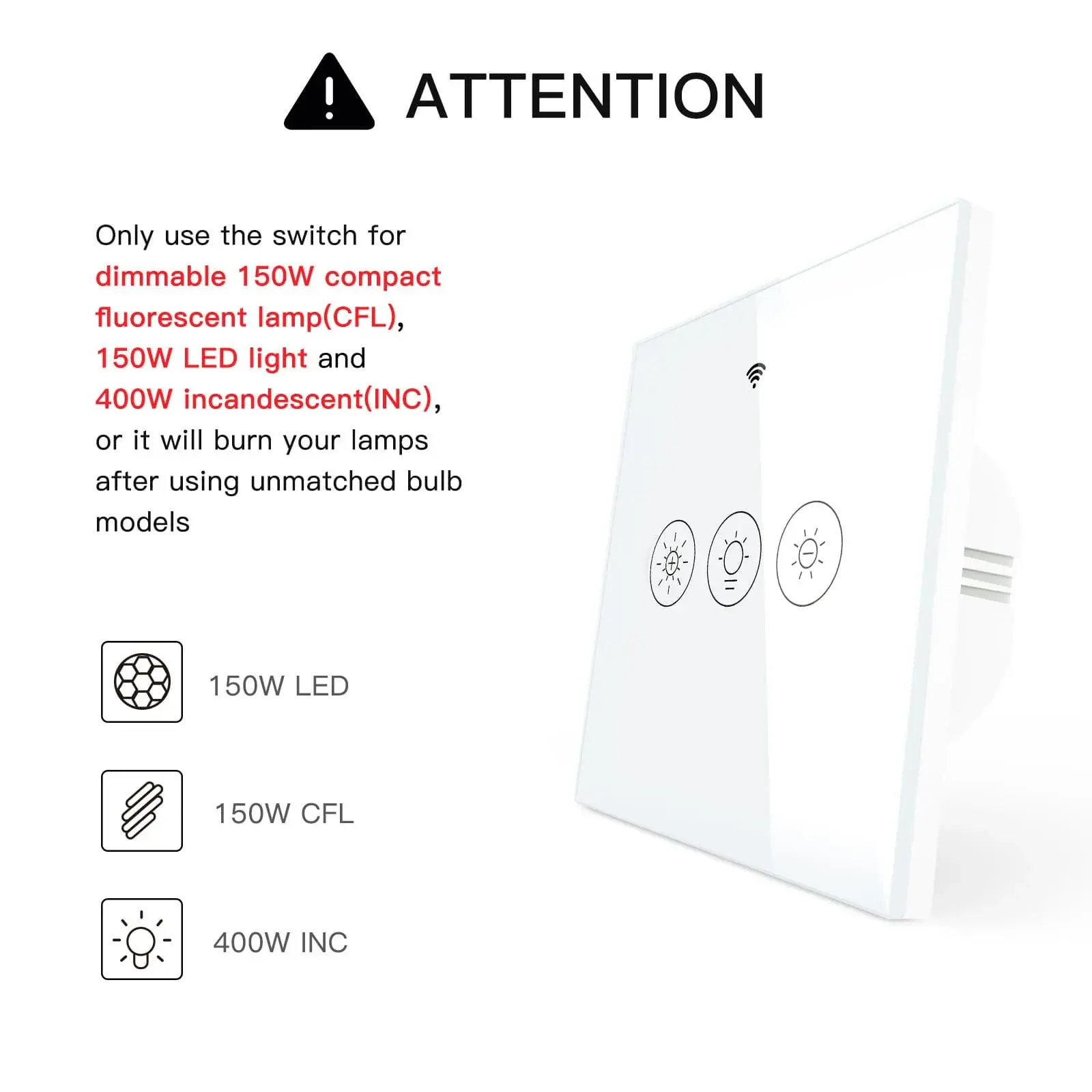 WiFi Smart Light Dimmer Switch RF433 – Glass Touch, EU Version