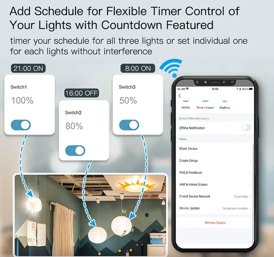 - WiFi Connectivity: Control lights remotely via the MOES app.
