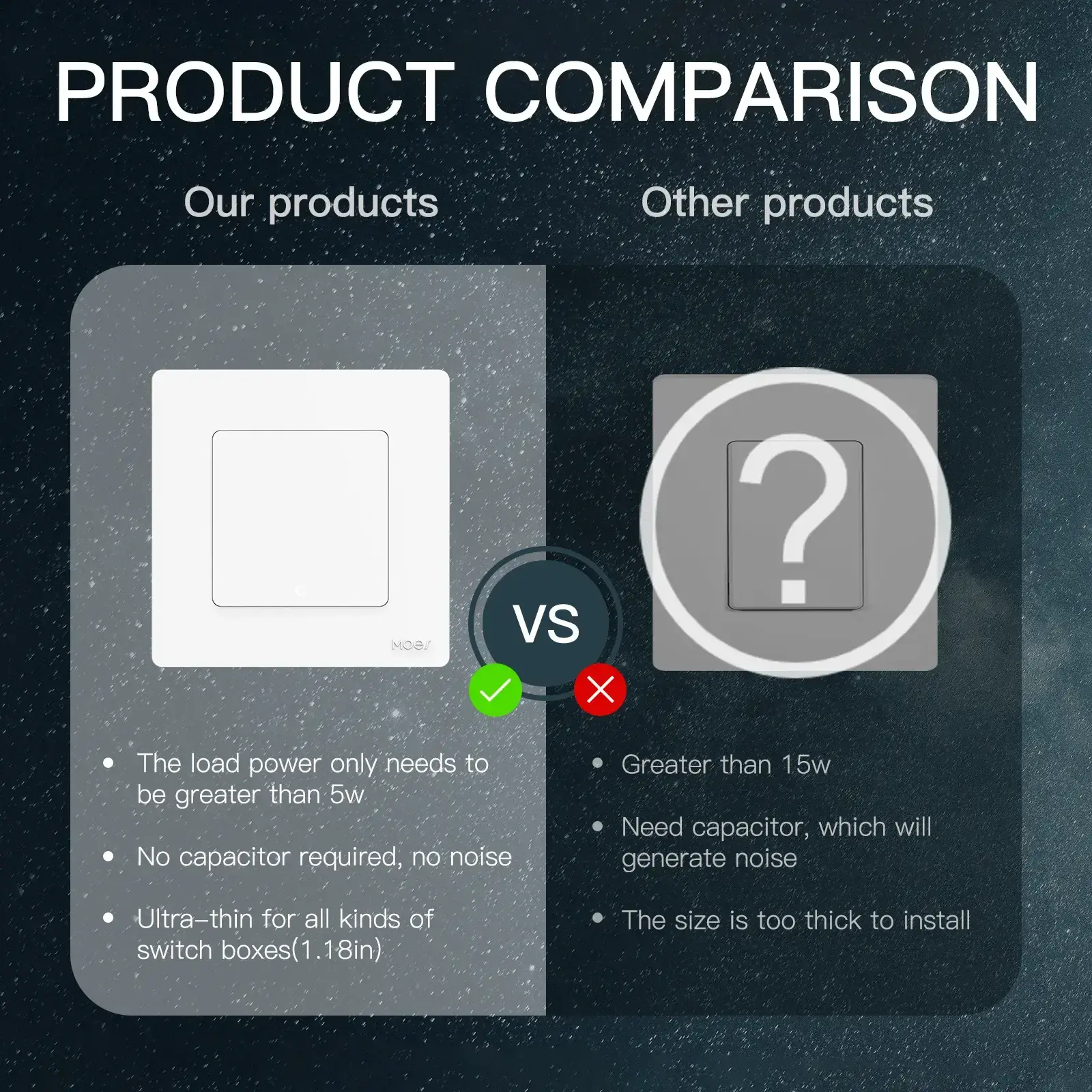 - No Capacitor Required: Unlike traditional single live wire switches, this smart switch operates normally and stably without a capacitor, eliminating noise concerns.