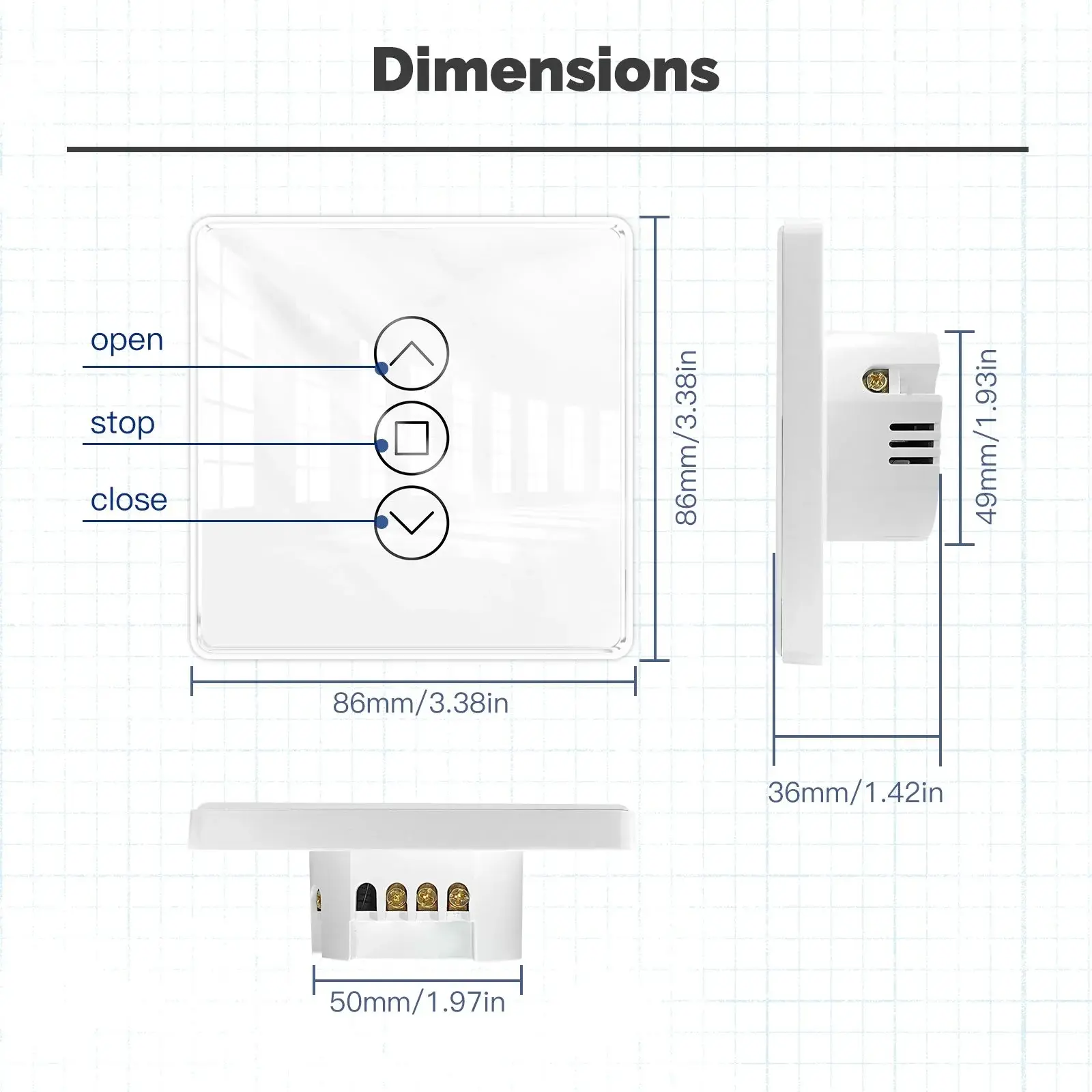 Experience seamless style and functionality with our Arc Glass switch. Effortlessly control roller blinds from anywhere with Zigbee connectivity and the MOES app. Featuring a new upgraded 2.5D arc glass touch panel design, it supports manual, app, RF remote, and voice control. Pair with various window treatments and set flexible schedules for ultimate convenience.