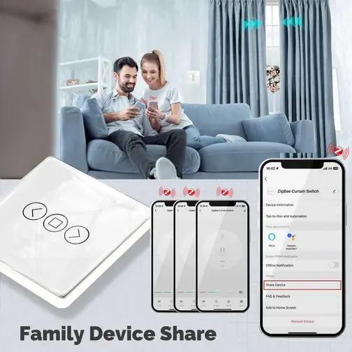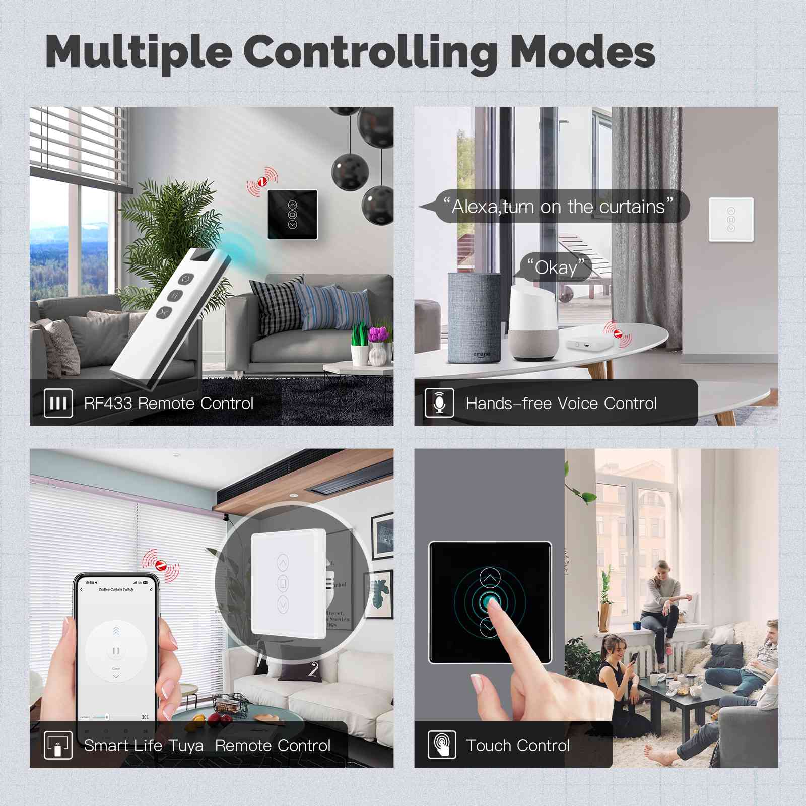The curtain switch can adapt to multiple types of curtains such as Roman curtain, open and close curtain and shutter curtain as you need in your house.
