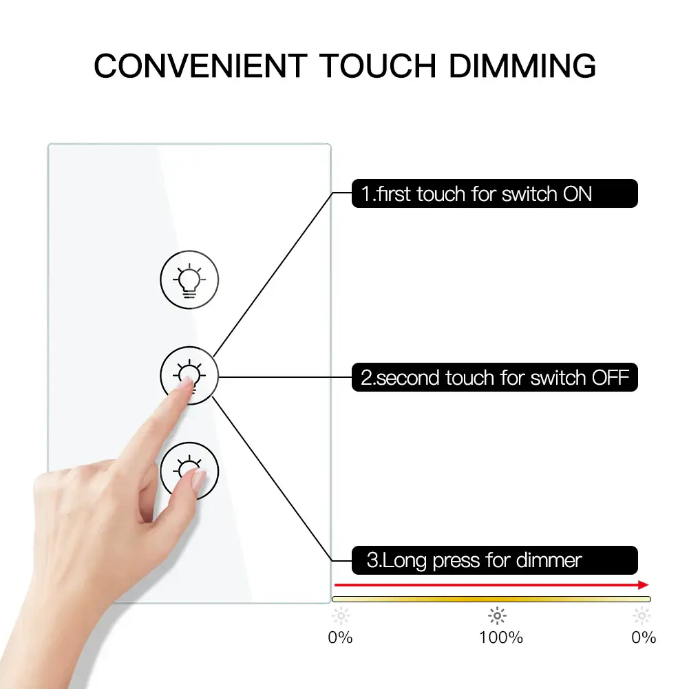 - 0%-100% Dimmable: Each single button on the smart dimmer switch allows for precise dimming control.