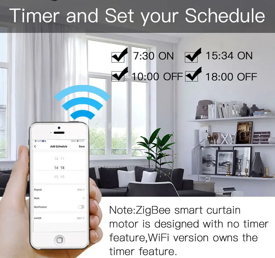 With this smart curtain system, you can easily set timers and create schedules to automate your curtain movements. Whether you want to wake up to natural light or ensure privacy at night, this system allows you to customize the opening and closing of your curtains according to your desired schedule. (Please note that the ZigBee version does not have a timer feature, while the WiFi version does.) One of the standout features of this smart curtain system is its ultra-quiet design. Incorporating three patented silent technologies, this motorized track system operates at a noise level as low as 30 dB. Say goodbye to noisy curtains that interrupt your peaceful environment.